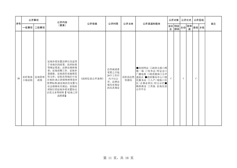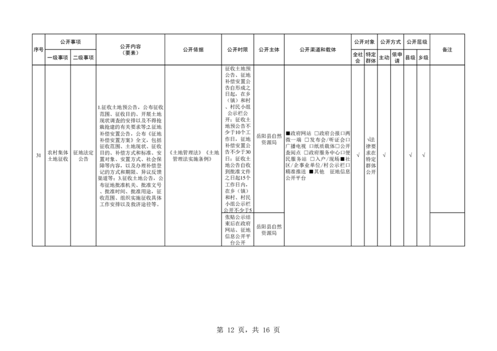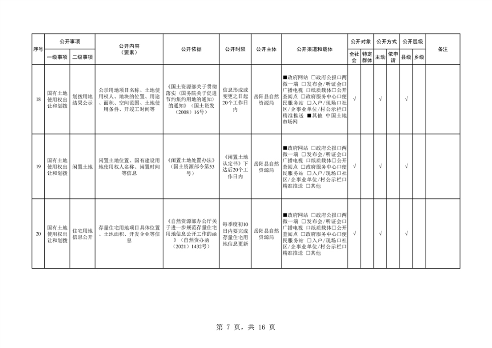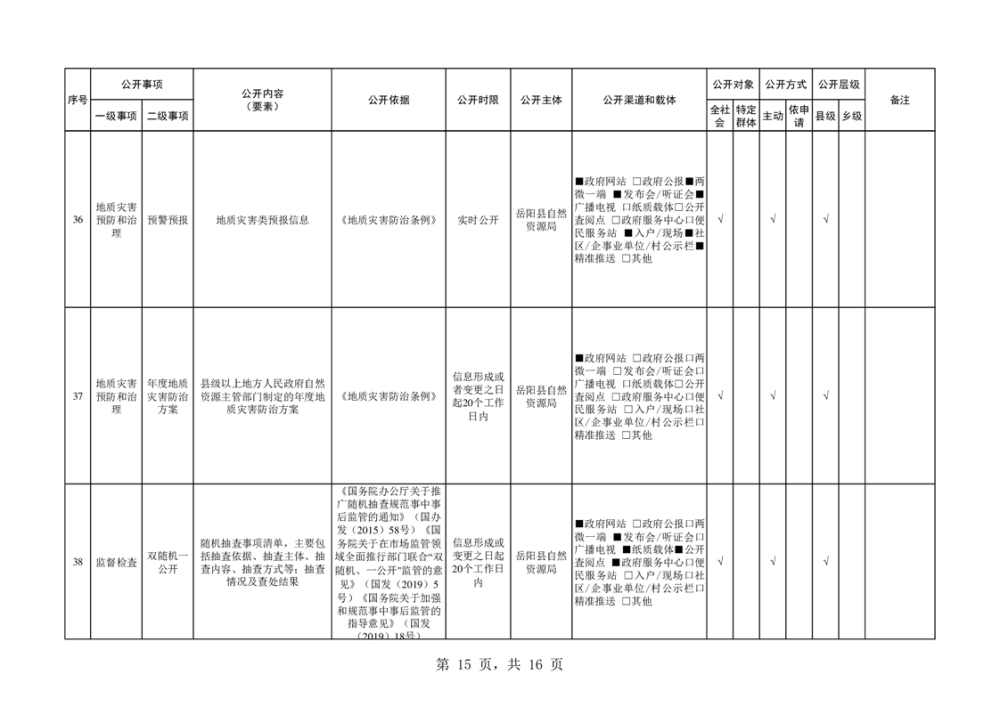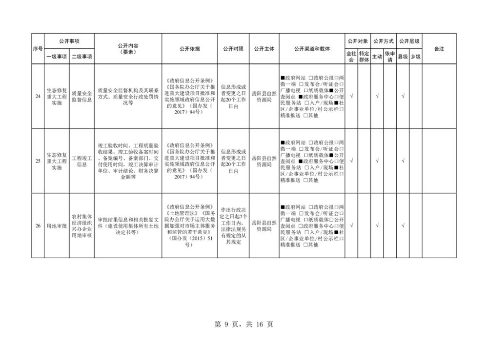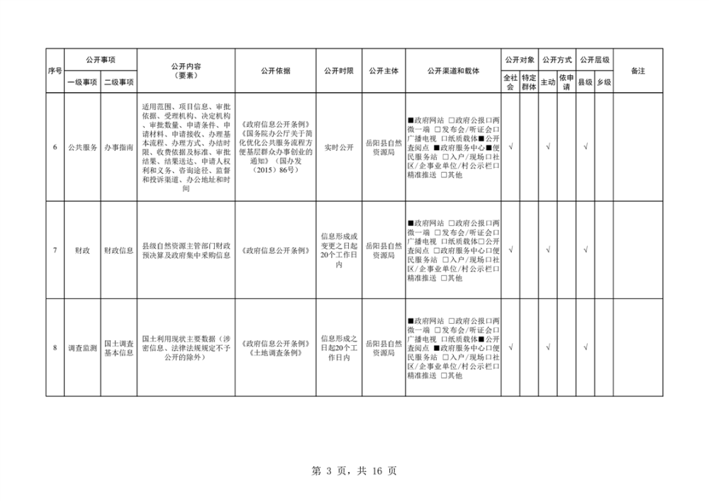 嶽陽縣自然資源領域基層政務公開標準目錄