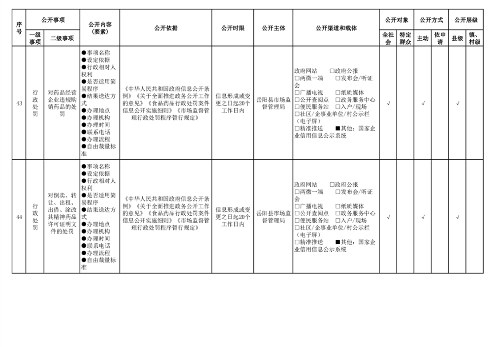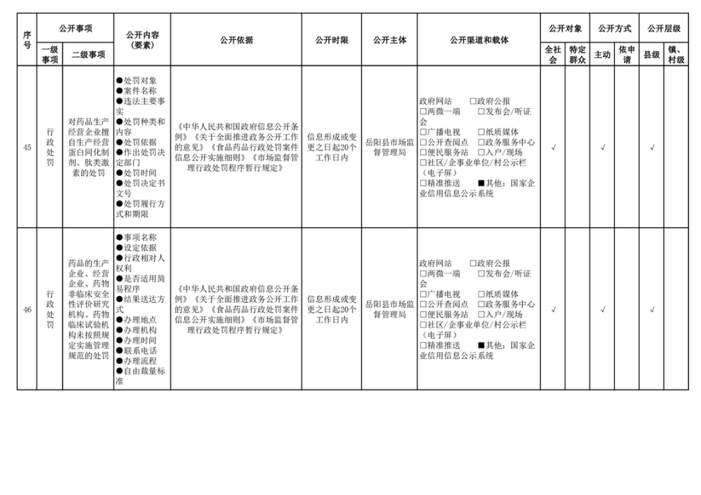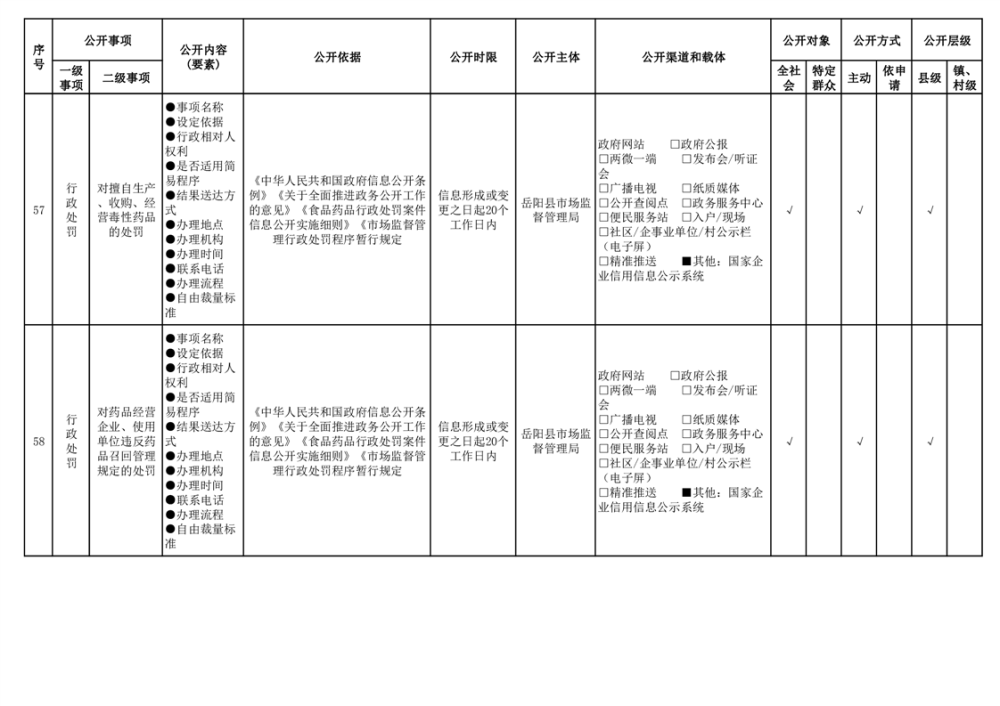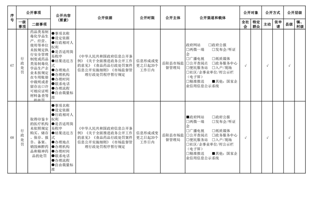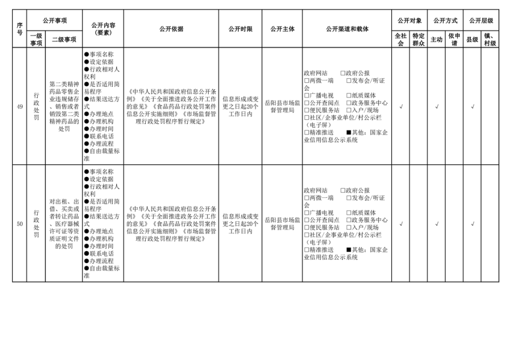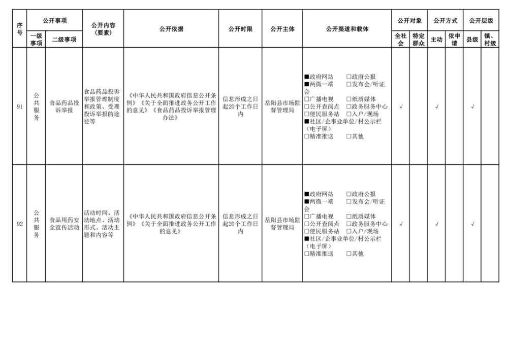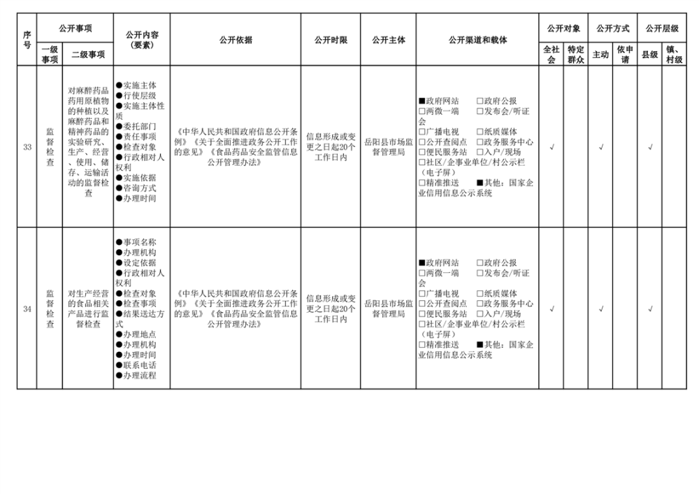 嶽陽縣食品藥品領域基層政務公開標準目錄
