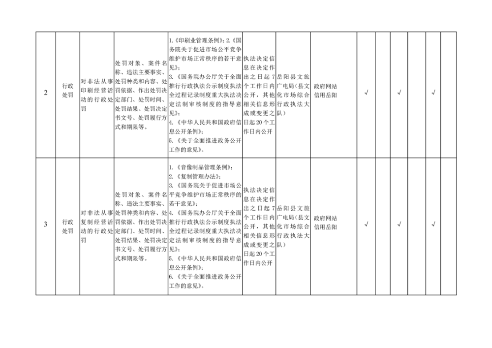 嶽陽縣新聞出版版權領域基層政務公開標準目錄