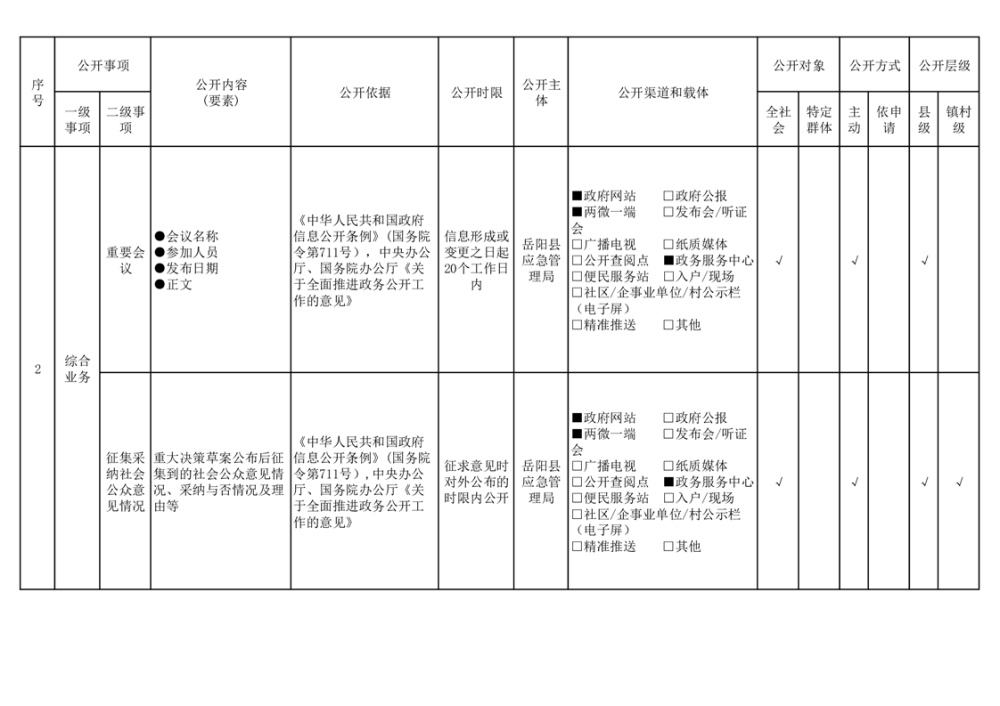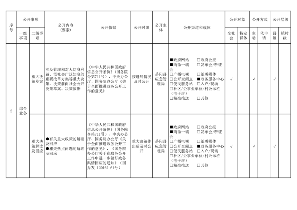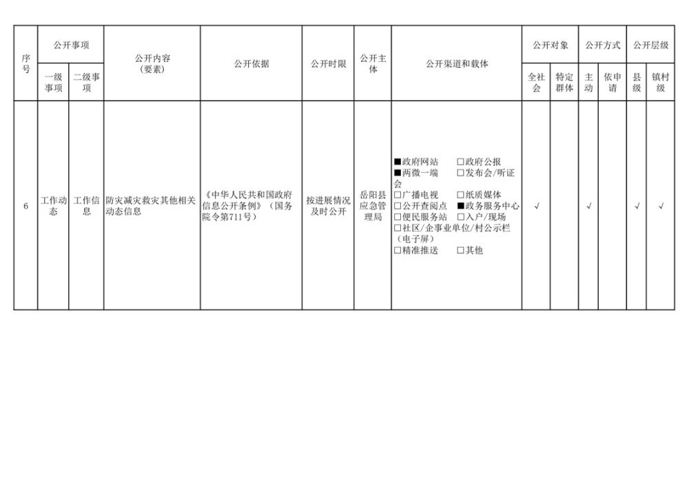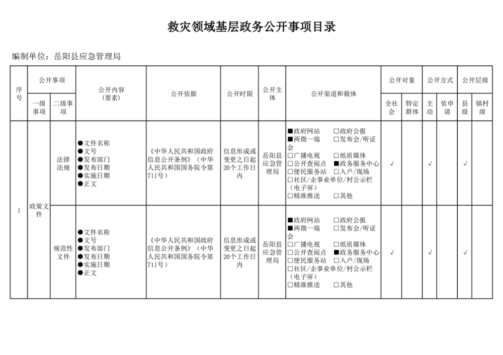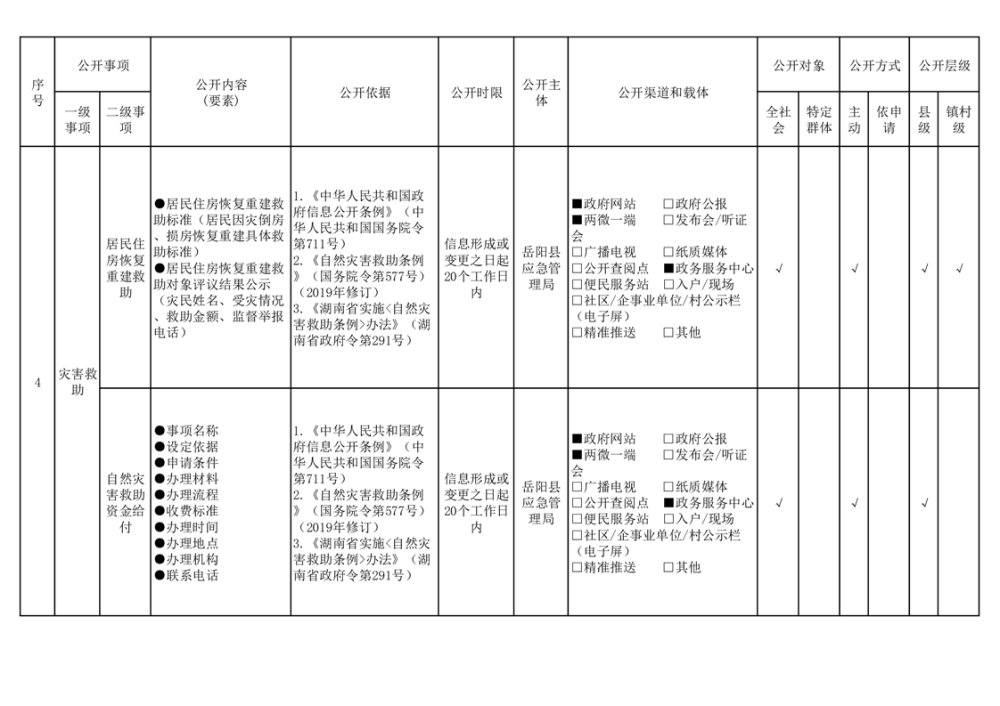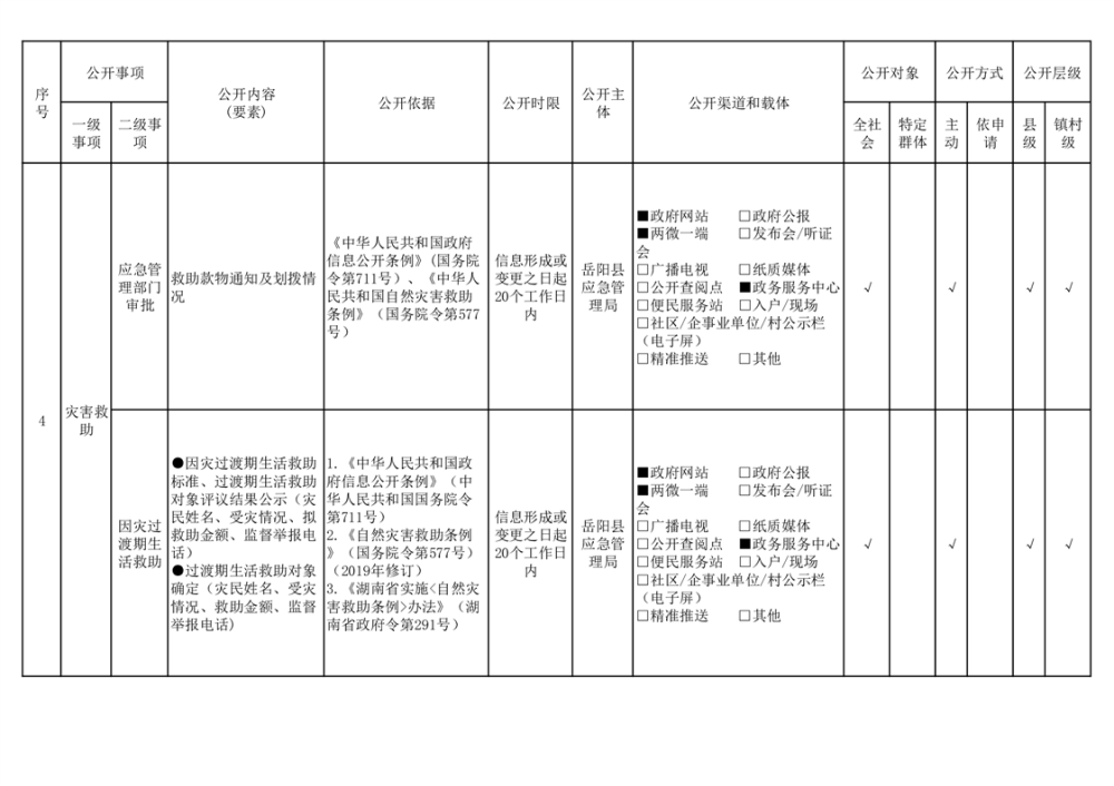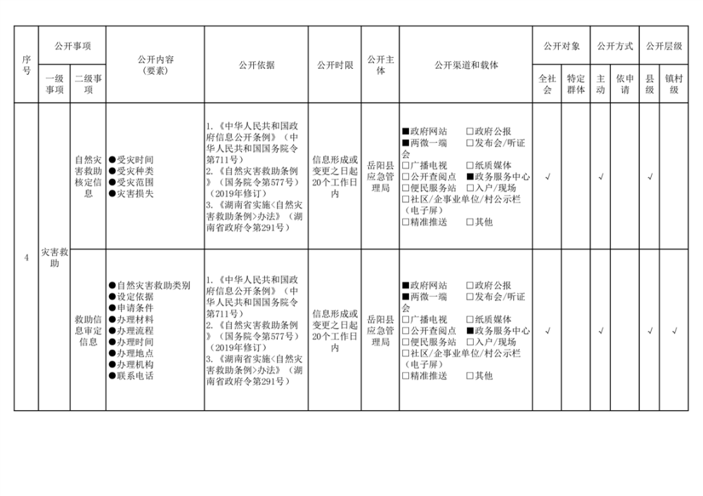 嶽陽縣救災領域基層政務公開標準目錄