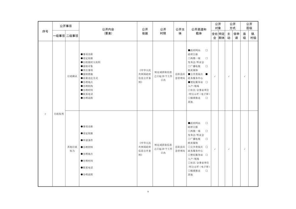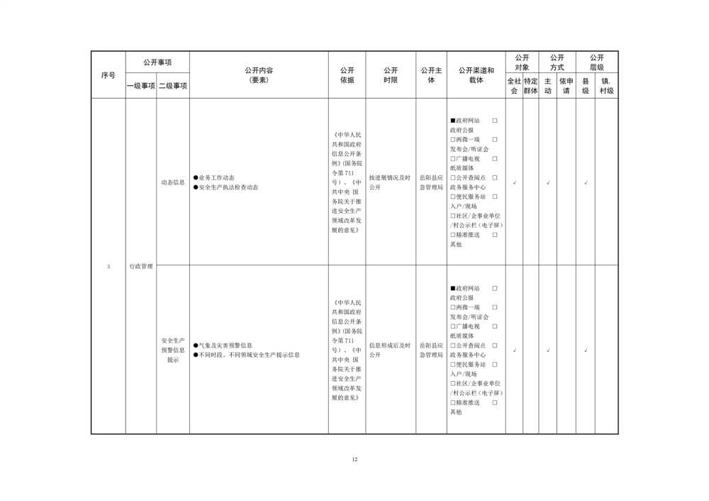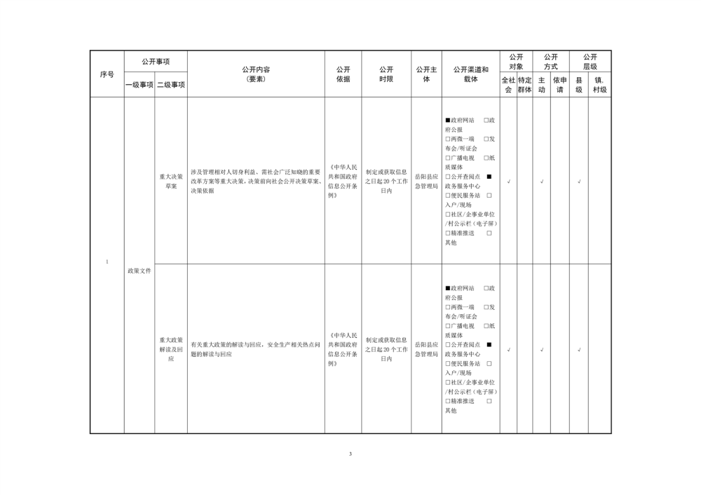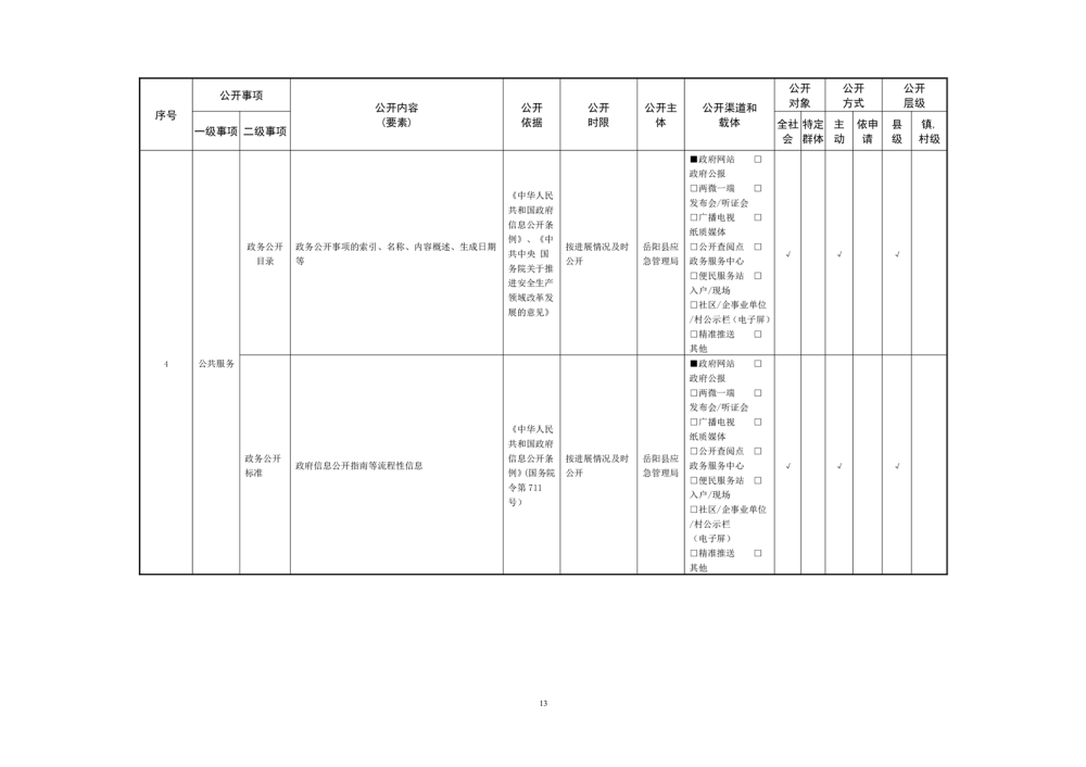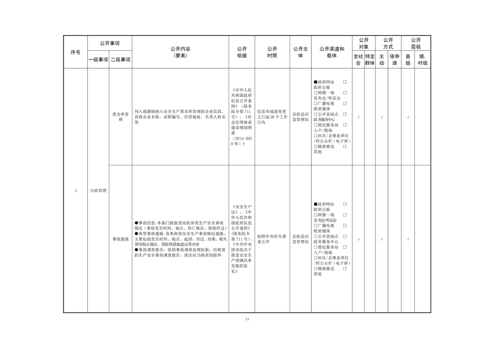 嶽陽縣安全生產領域基層政務公開標準目錄