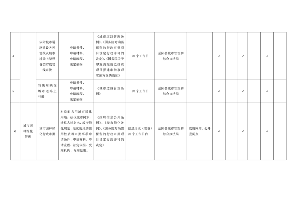 嶽陽縣市政服務領域基層政務公開標準目錄