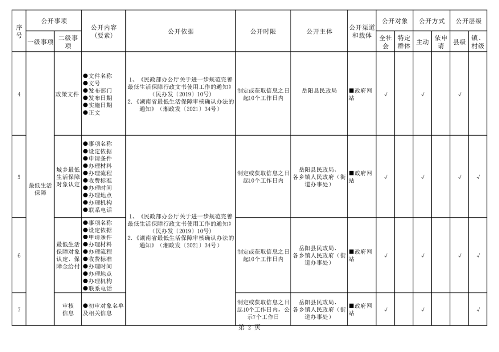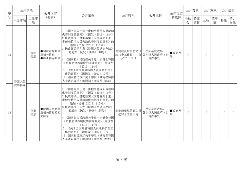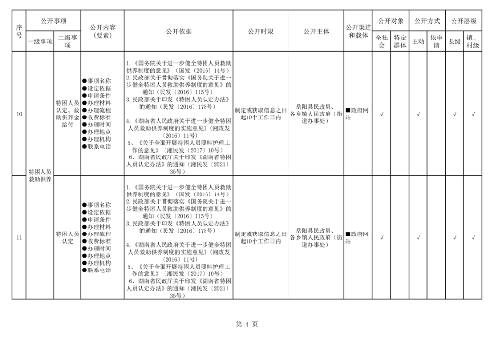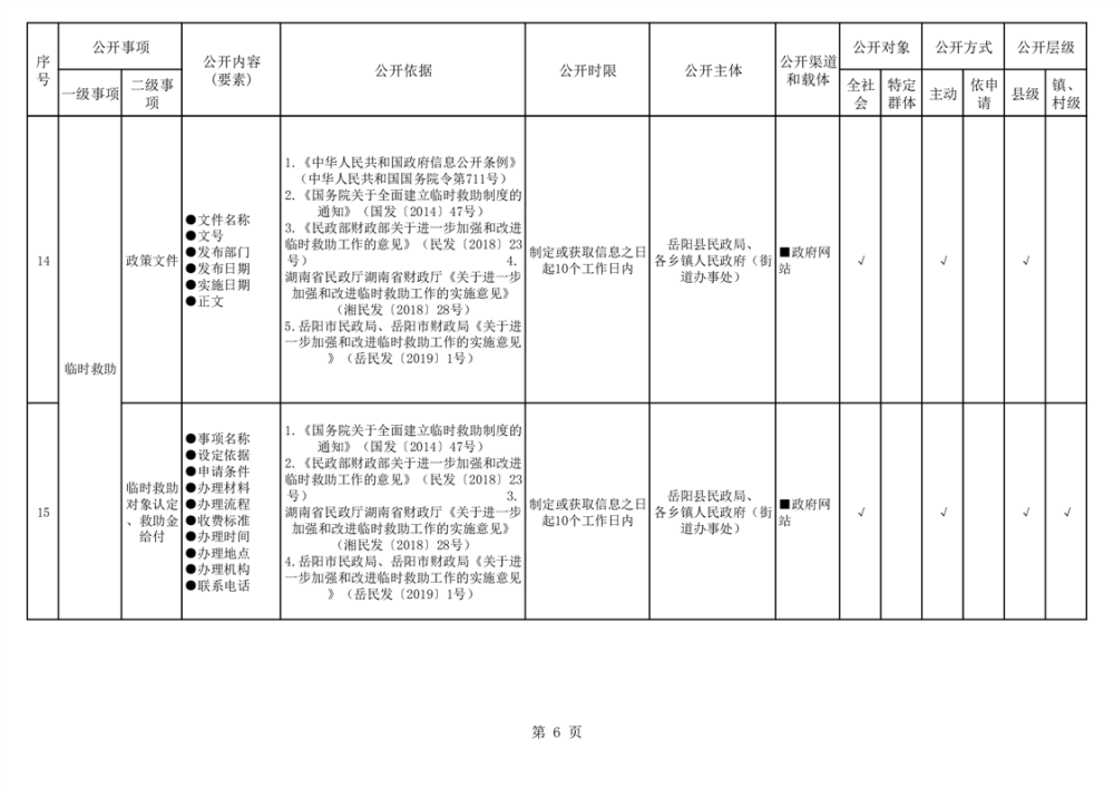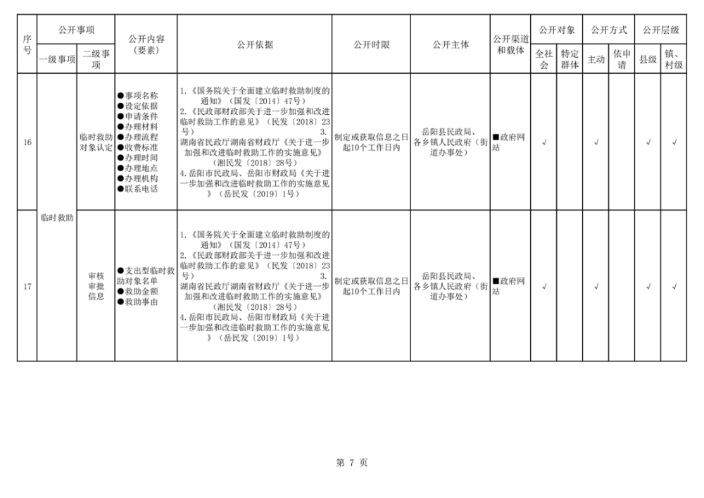 嶽陽縣社會救助領域基層政務公開標準目錄