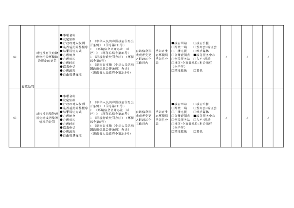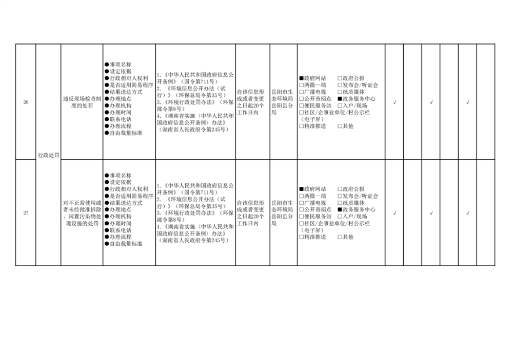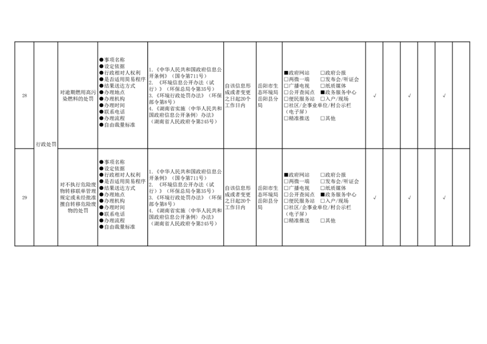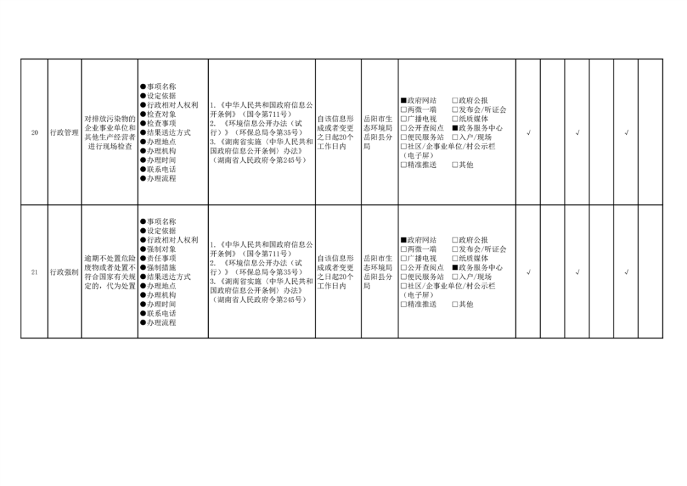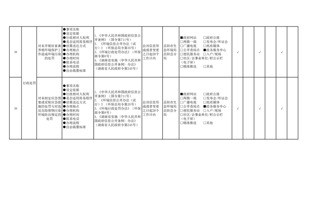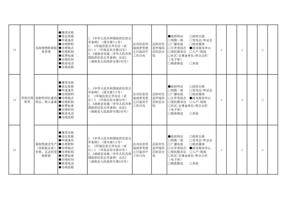 嶽陽縣生態環境領域基層政務公開標準目錄