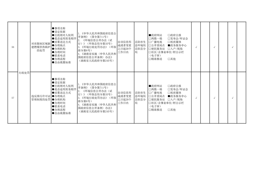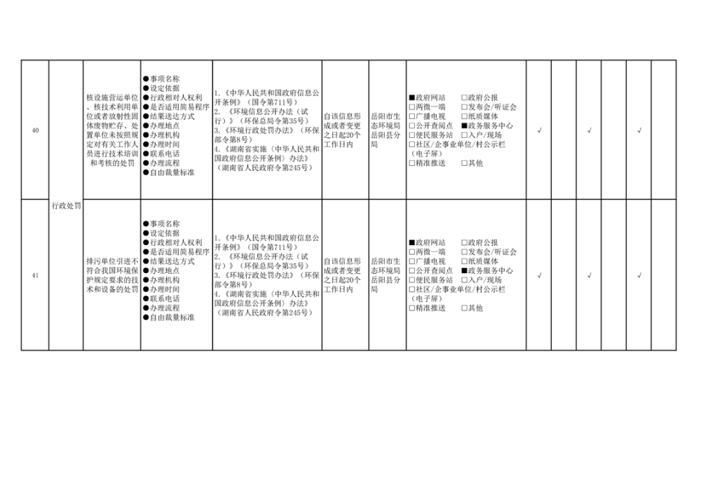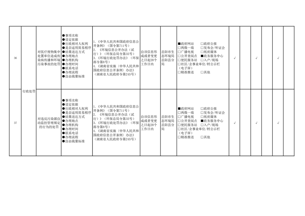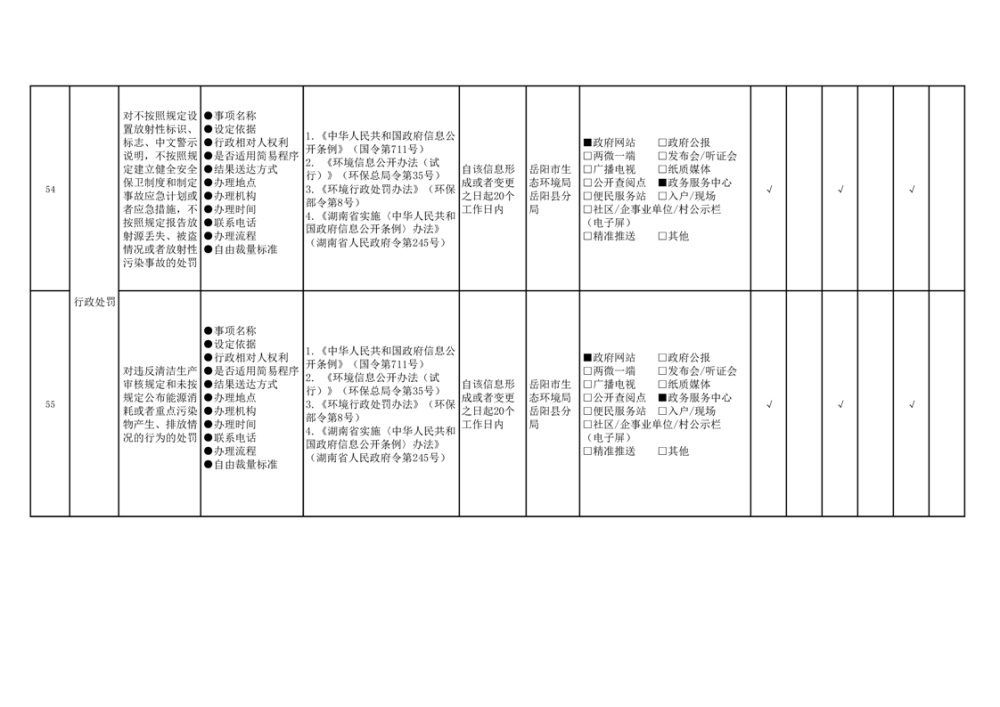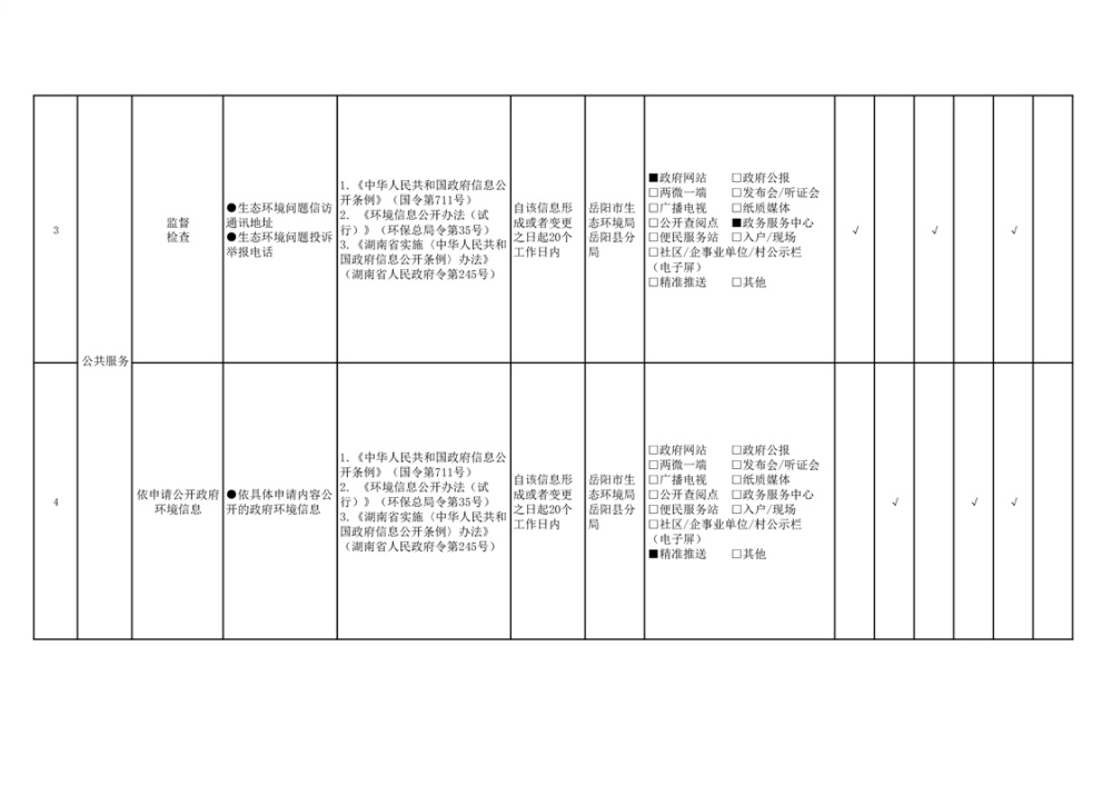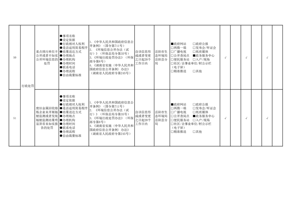 嶽陽縣生態環境領域基層政務公開標準目錄