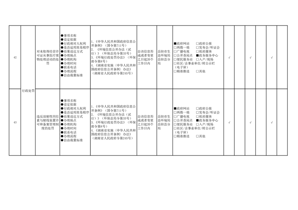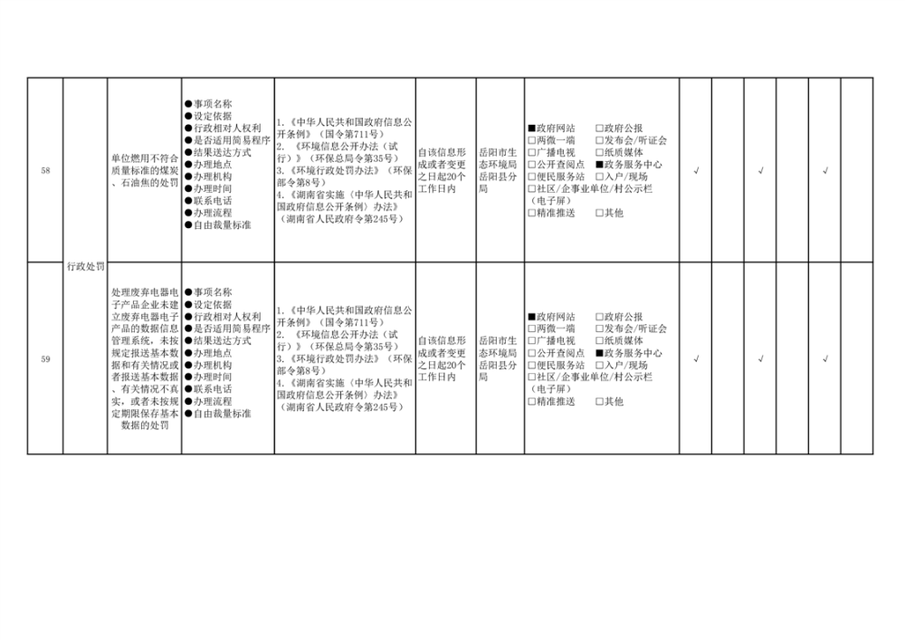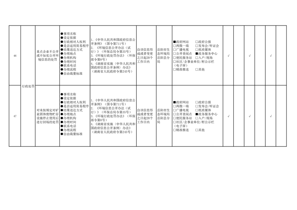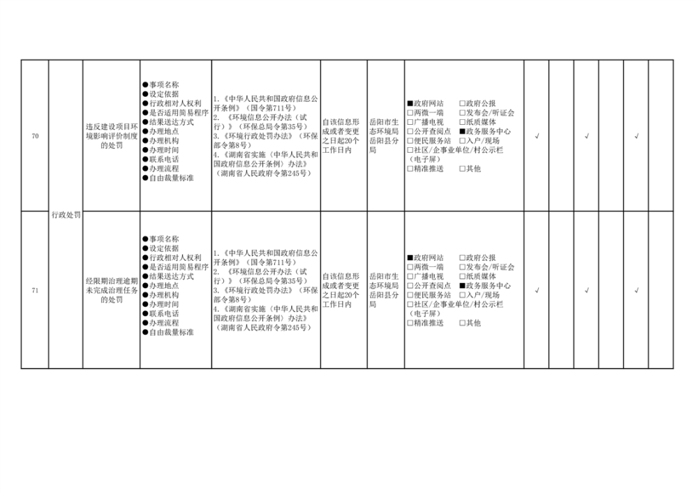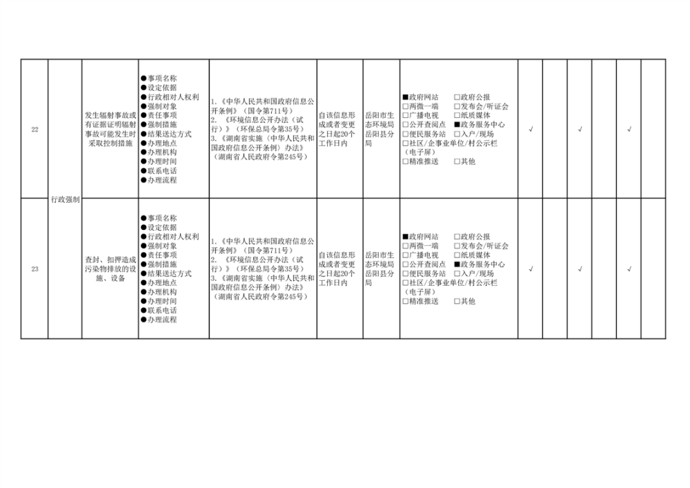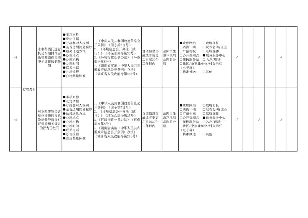 嶽陽縣生態環境領域基層政務公開標準目錄