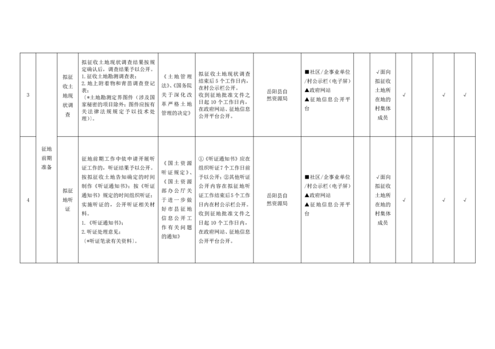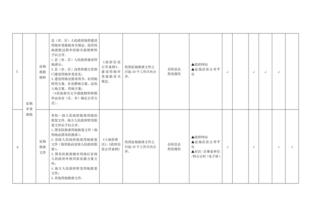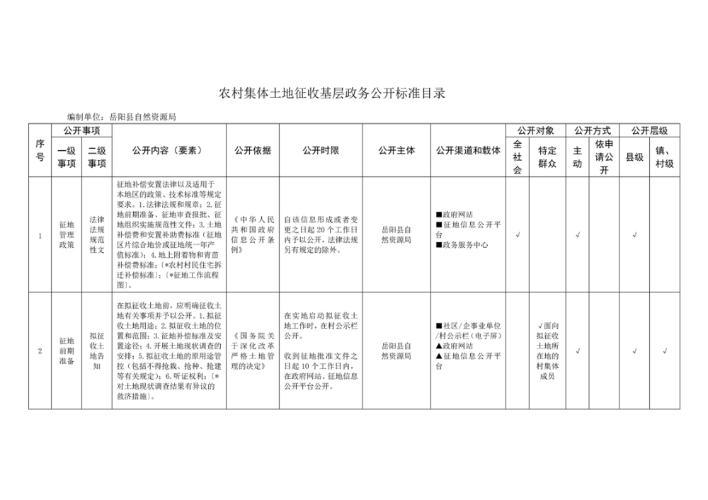 嶽陽縣農村集體土地征收基層政務公開標準目錄