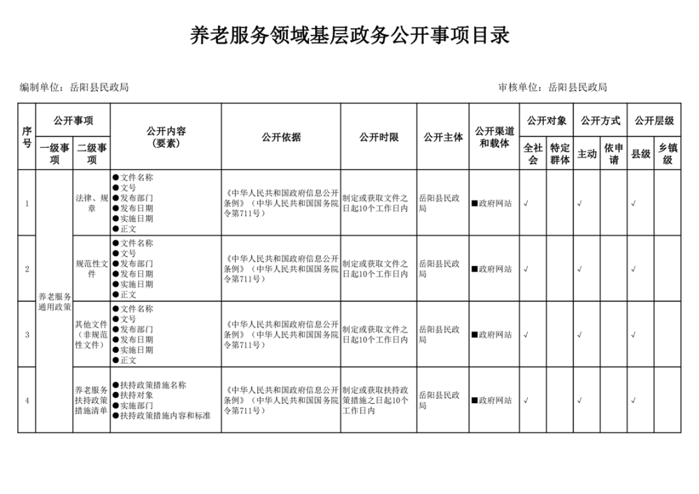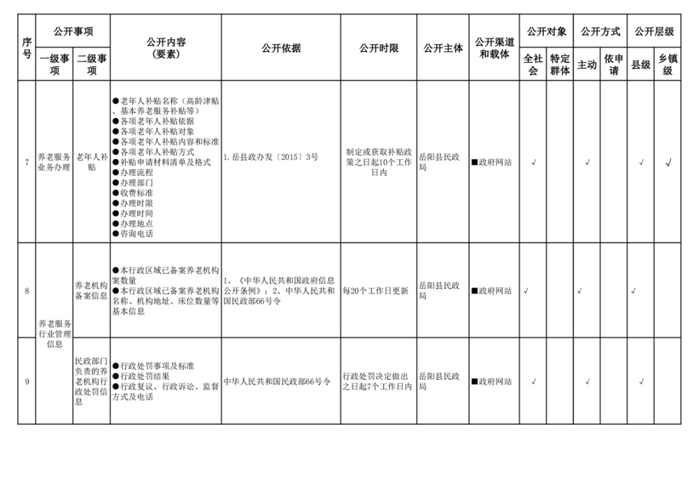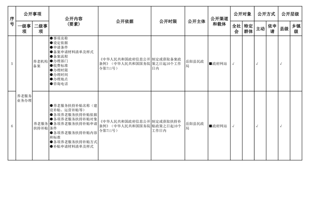嶽陽縣養老服務領域基層政務公開標準目錄