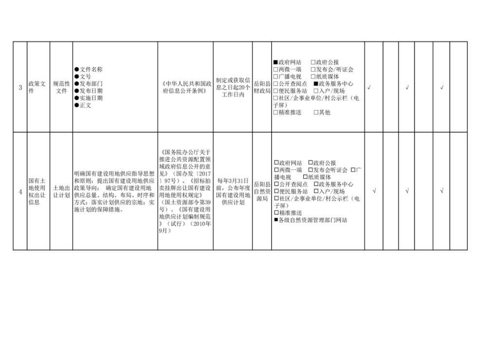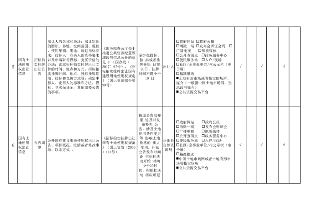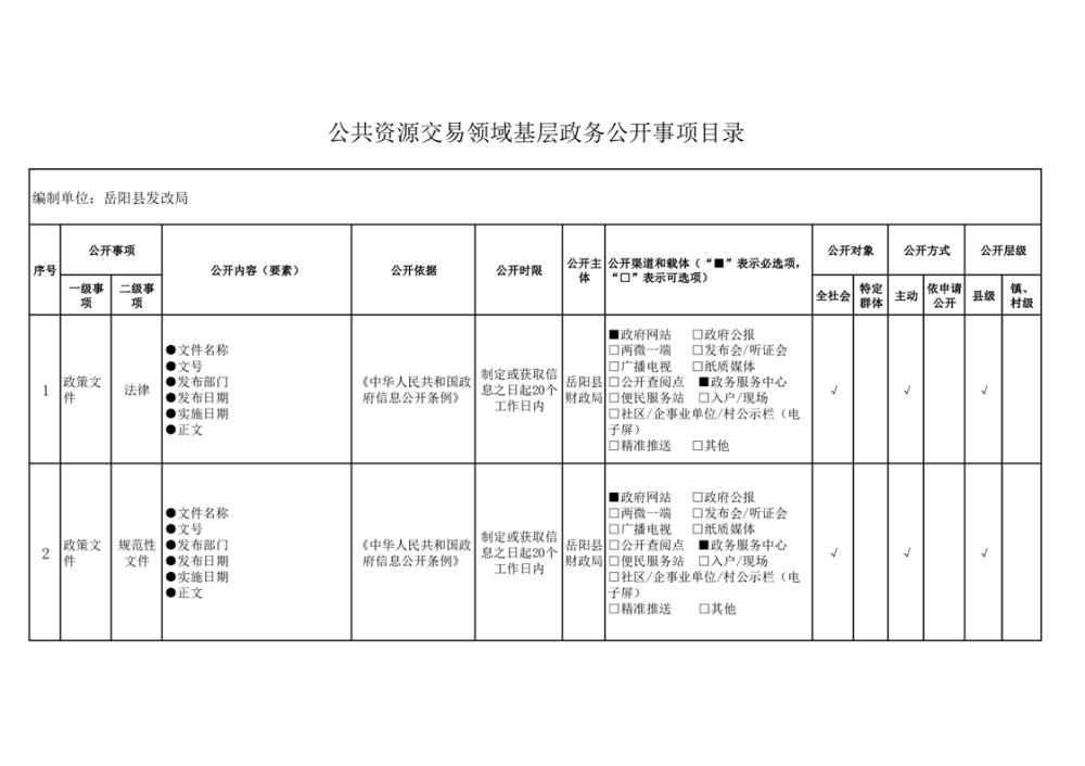 嶽陽縣公共資源交易領域基層政務公開事項目錄