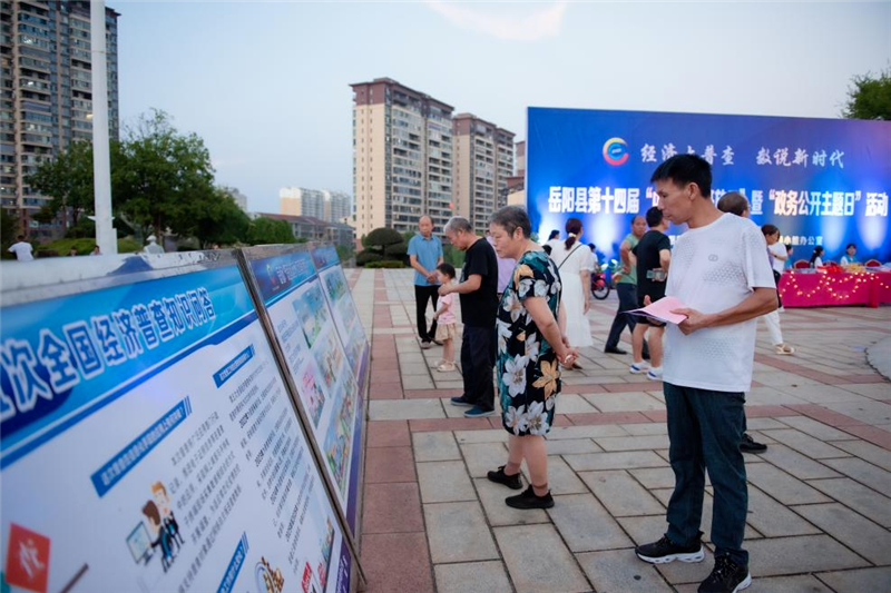 為促進統計公開透明,提升政府統計形象,更好地宣傳第五次全國經濟普查,9月17日,嶽陽縣第十四屆“中國統計開放日”現場活動在榮家灣鎮城南河廣場進行,本屆開放日以“經濟大普查 數說新時代”為主題。
