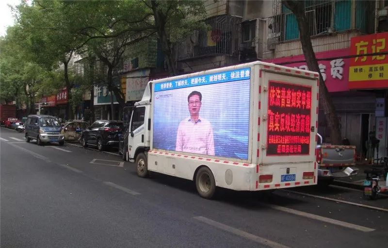 同時,滾動播放五經普宣傳視頻的宣傳車,在縣城內及全縣重點鄉鎮的主要街道上巡遊宣傳和駐點停放,以聲形結合的方式,對沿途和宣傳點的行人、商鋪和企業進行流動宣傳,達到“行駛一程、宣傳一路”的良好效果。